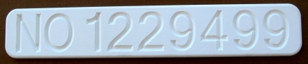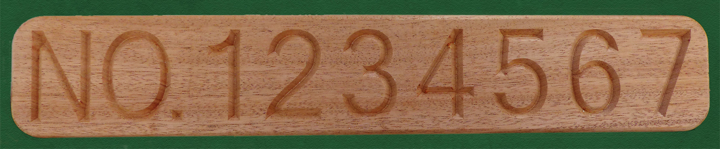 Documentation-board letters & numerals are engraved into whichever material you choose, in the Arabic type font shown, and are 3" high. The format for the letters and numerals is: NO.1234567.
