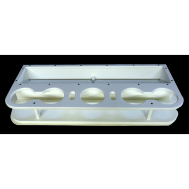 This is our largest drink holder/storage bin combo, with room for up to 5 cans with coozies, as well as cups and mugs with handles. Like our other drink holders, this model is fabricated entirely of 1/2" thick King Starboard (a weather-proof, color-fast marine plastic), and is assembled with stainless steel fasteners.