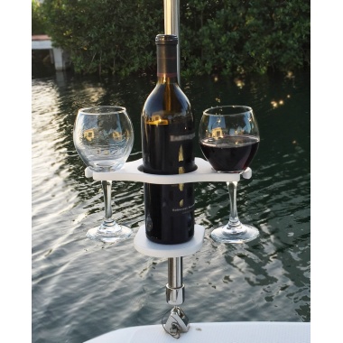 Install this attractive wine bottle & glasses holder on any 1" diameter stanchion or tube with a twist of your wrist -- no drilling or fasteners required.