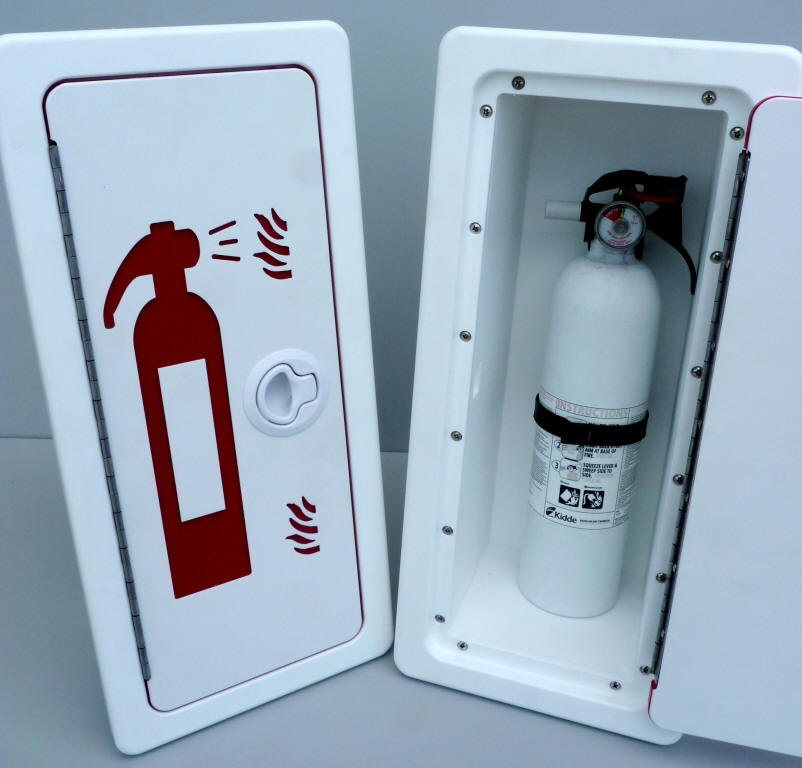 Fire Extinguisher Storage Box With Starboard Color-Core Graphics -- $174.95 – Measures 18.75”H x 8.5”W x 6”D