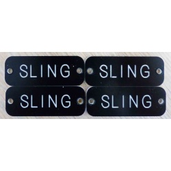 Boat Sling Labels -- Set Of 4 -- $14.95 W/Free Domestic ShippingBoat Sling Labels -- We mill these labels from engraving stock that we use to produce custom switch panels and boat dashboards. The stuff is weatherproof and color-fast, which makes it a good solution for permanently affixed boat sling labels.