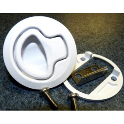 Southco White Polycarbonate Non-Locking Slam Latch - M1-63-1SC - Free Shipping In The United StatesA corrosion resistant, marine-grade polycarbonate fitting. Single round hole installation, flush mounting. Spring loaded latch operates with pull of lift ring and can be opened from inside the closure as well. This fitting is rated for a 60 lb. working load on the latch pawl, and will tolerate temperature extremes from 0 to 140 deg. Fahrenheit.