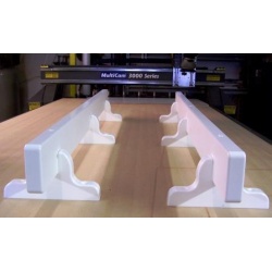 Light But Strong. These rail chocks and bases are 1-1/2” thick, and all edges are rounded and milled smooth. Rails measure approximately 5”W x 4'L, and each rail is supported by two bases, each measuring approximately 6”H x 10-1/2”W. The finished structure weighs less than 30 lbs., yet is extremely strong and will easily support the weight of just about any PWC, RIB dinghy or other small to medium-size tender.