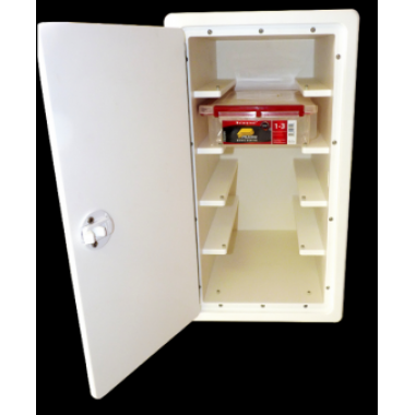 • Frame, door panel, and all shelves built with King Starboard, and the surrounding carcass is white PVC for weight savings.